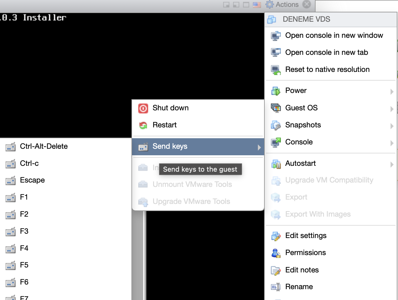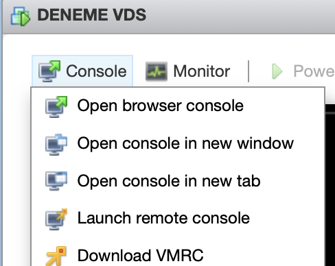Sunucu yönetim ekranına girdikten sonra 'Power ON' butonuna tıklayarak sunucuyu başlatıyoruz. Sunucu başlatıldıktan sonra 'Console' seçeneğine tıklayarak sanal sunucunun konsol bağlantısına erişim sağlıyoruz. Bu adım, işletim sistemi kurulumunu başlatmak için gereklidir.