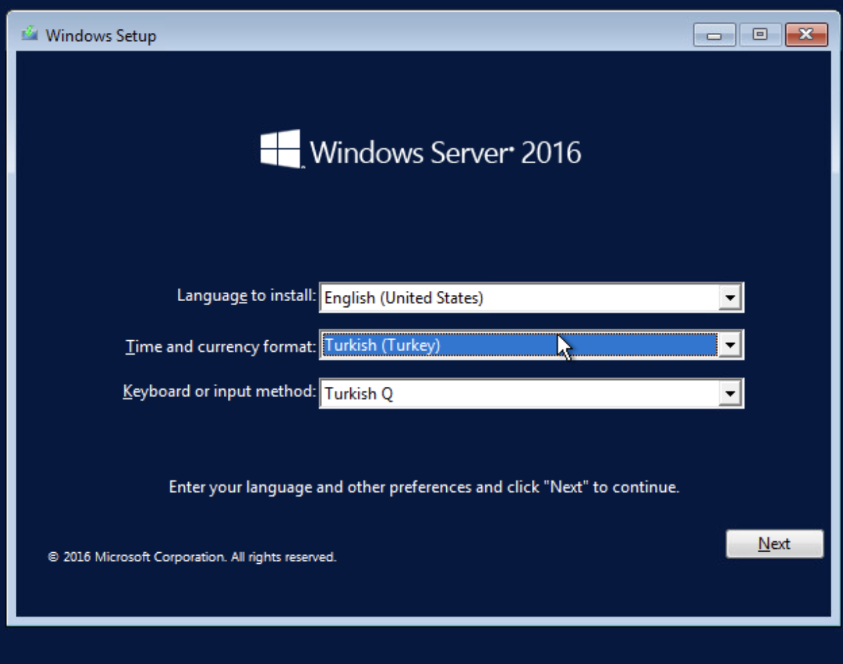 Harika! Windows ISO başarıyla önyüklendi. Şimdi kurulum sihirbazı açılacak ve Windows Server kurulum adımlarına geçeceğiz.