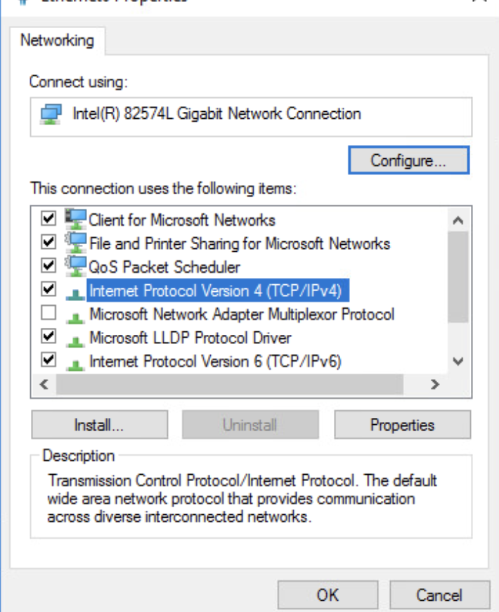 IPv4 ayarları için 'Internet Protocol Version 4 (TCP/IPv4)' seçeneğine,