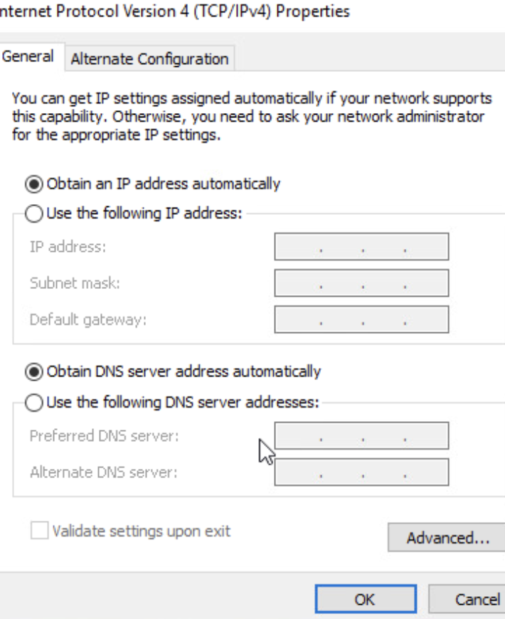 Alternate DNS server (Alternatif DNS Sunucusu): İkincil DNS adresi (isteğe bağlı)