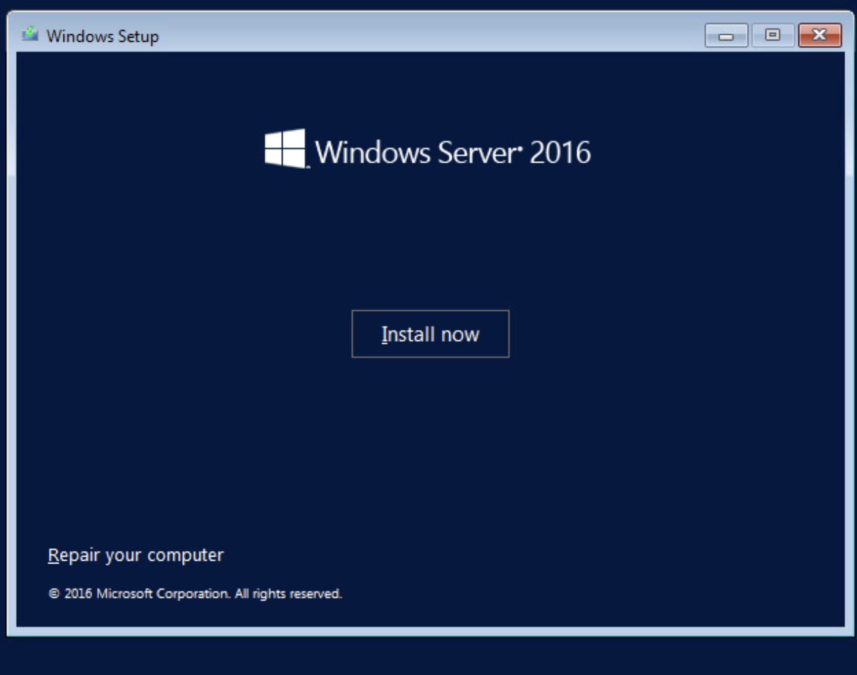 Klavye ve dil ayarlarını tamamladıktan sonra 'Install Now' butonuna tıklayarak Windows Server kurulum işlemine başlıyoruz. Bu adım, işletim sisteminin disk üzerine yüklenmesi için gerekli kurulum sihirbazını başlatır.