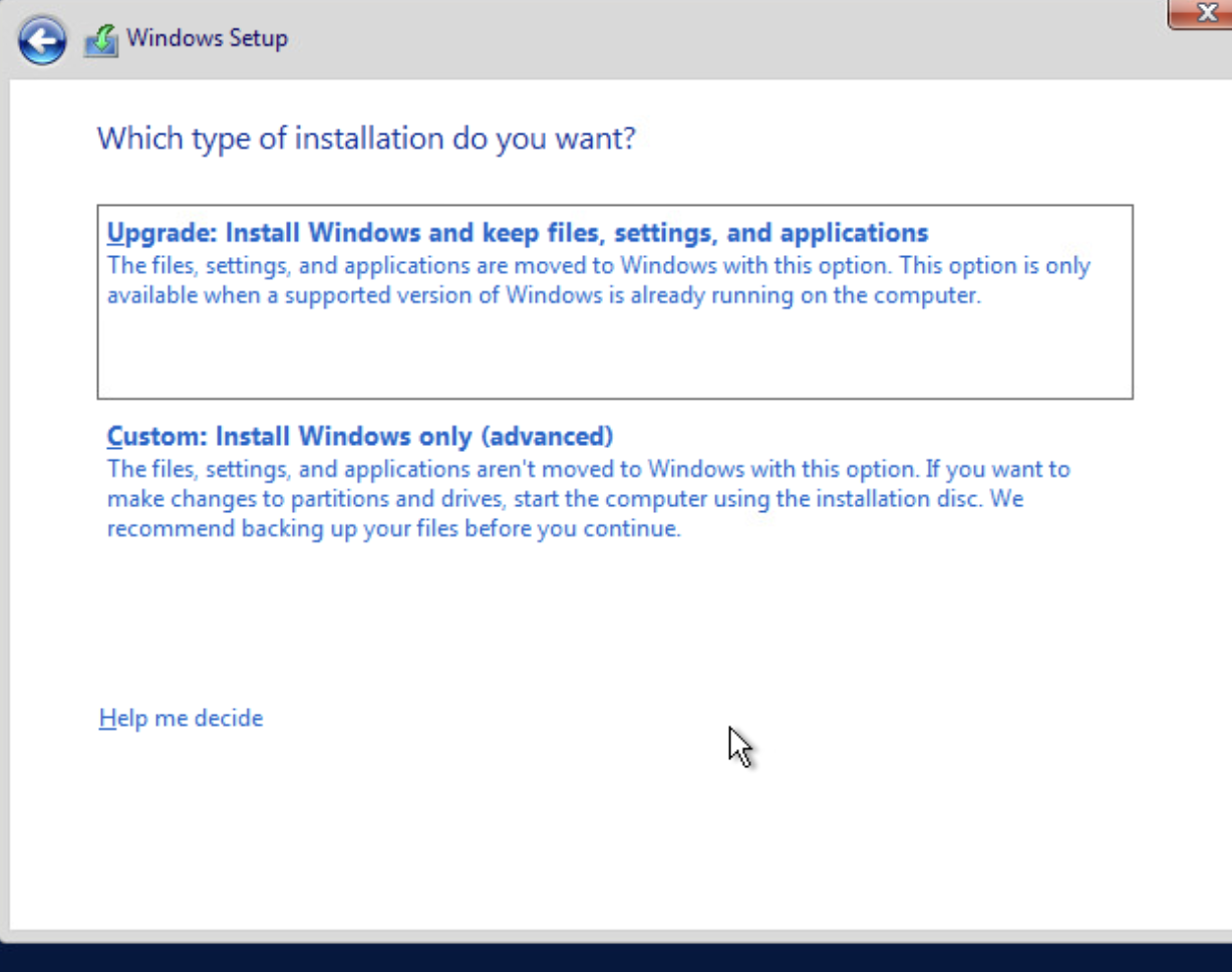 Lisans sözleşmesini kabul ettikten sonra kurulum türü seçim ekranına geliyoruz. Burada 'Custom: Install Windows only (advanced)' seçeneğini seçiyoruz. Bu seçenek, temiz bir Windows Server kurulumu yapmamızı sağlar ve mevcut disk alanına doğrudan yükleme gerçekleştirir. Seçimi yaptıktan sonra 'Next' butonuna tıklayarak devam ediyoruz.